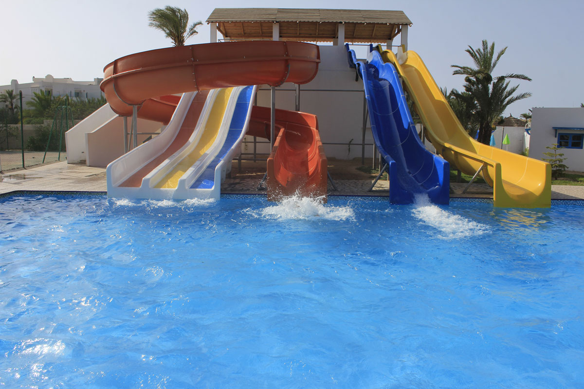 - Lespace « fun » avec sa piscine à toboggans, pour les petits et les grands.